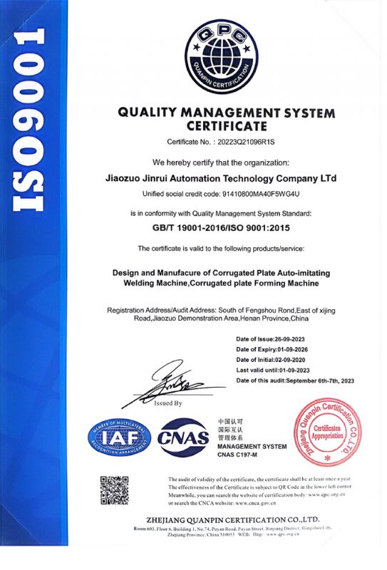 質(zhì)量管理體系認(rèn)證證書(英文版)